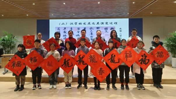 从结绳记事到符号刻画,从仓颉造字到《说文解字》,正是有了汉字,我们才能读懂数千年前先辈们留下的古籍经典。《发现汉字之美——中国书法艺术赏析》活动现场,任杰老师带领现场的小读者们回顾了汉字的发展及演变过程,并结合“泰山刻石”“老子甲本”,《曹全碑》《西狭颂》《黄庭经》《多宝塔》等经典碑帖介绍了“甲骨文→大篆(金文、钟鼎文)→小篆→ 隶书→楷书、草书→行书”的美与异同。活动现场,小读者们还书写了不同字体的“春”“福”“龙”。