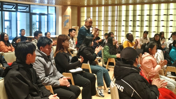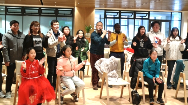 《满载民歌逛山西——山西民歌赏析》活动现场,60余名民歌爱好者参与,其中有近20位是来自印度尼西亚、蒙古国、卢旺达、越南等10余个国家的山西大学留学生。活动现场,任俊文教授边吹边唱,现场读者边唱边学。整场活动旋律悠扬、掌声不断,大家不仅学会了《交城山》《桃花红杏花白》《人说山西好风光》3首经典山西民歌,而且更直观地感受到了山西民歌的魅力与风采。