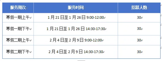 温馨提示:报名时请选择一期进行报名,按照服务时间完成6次18个小时的服务。