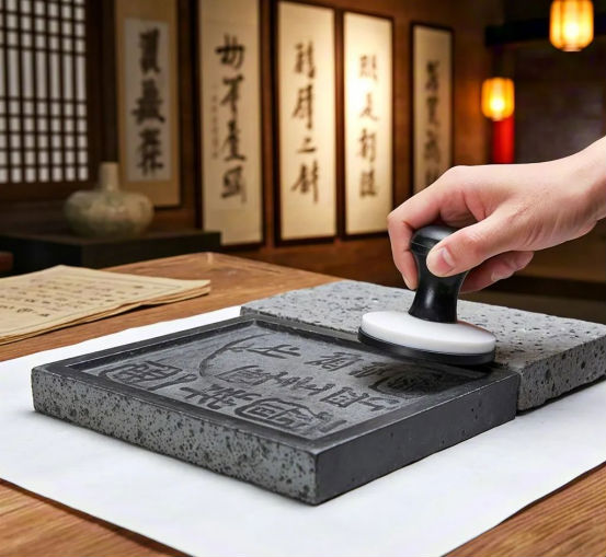 拓印是一种古老的印刷术,发明于东汉汉灵帝时期,因熹平石经的刊刻而发明。所谓的拓印就是把一张坚韧的薄纸事先浸湿,再敷在石碑上面,用刷子轻轻敲打,使纸入字口,待纸张干燥后用刷子蘸墨,轻轻地、均匀地拍刷,使墨均匀地涂布纸上,然后把纸揭下来,一张黑底白字的拓片就复制完成了,这种复制文字的方法,称之为"拓印"。它是将石刻或木刻文字,用纸、墨拍印出来,以便保存和传播的工艺方法。
