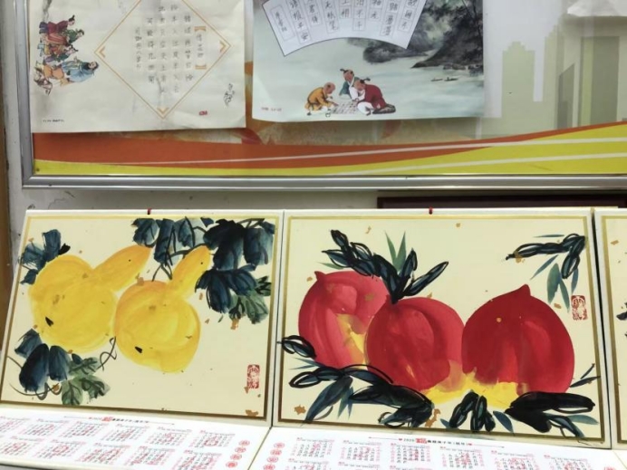 活动内容:体验中国传统艺术,用毛笔、宣纸、墨汁等材料绘制富有美好寓意的中国画。绘制内容以葫芦、寿桃、子、荔枝等果蔬为主。