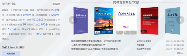 中国知网数据库是基于《中国知识资源总库》的全球最大的中文知识门户网站,目前我馆可使用以下数据库:中国期刊全文数据库、中国重要报纸全文数据库、中国博士学位论文全文数据库、中国优秀硕士学位论文全文数据库、山西年鉴数据库。(备注:使用山西省图书馆权限,可对以上数据库进行在线全文浏览及全文下载。)