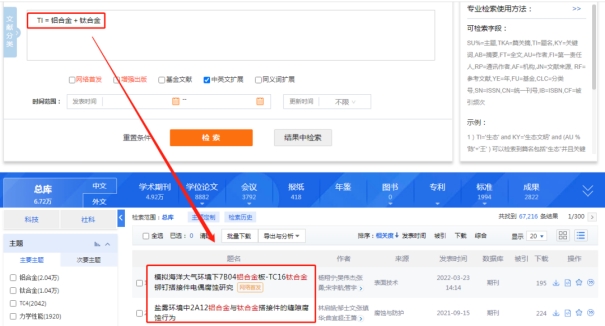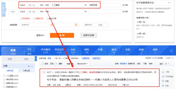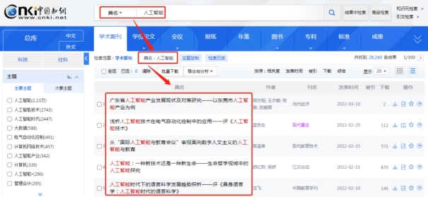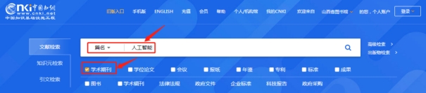 举例:检索篇名包含“人工智能”相关期刊文献。
