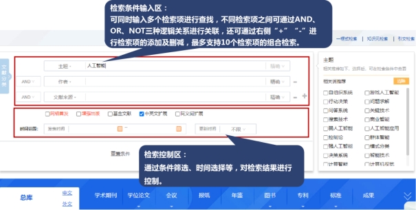 第四步:在检索区域输入检索词及检索条件进行核心期刊文献检索。