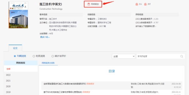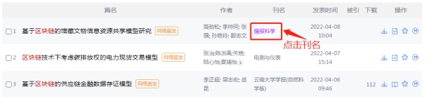 第五步:点击检索结果文献对应刊名,即可进入对应网络首发期刊详情页进行更多网络首发期刊文献查看。