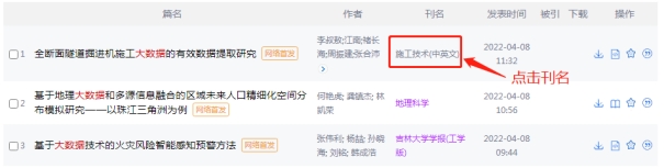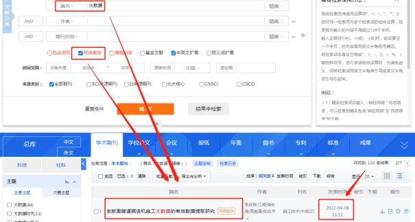 举例:检索篇名中包含“大数据”的网络首发期刊文献。