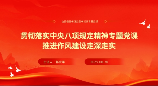 6月30日,山西省图书馆党委组织开展了深入贯彻中央八项规定精神学习教育党委书记讲党课活动。