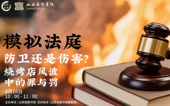 您是否好奇法庭审理的真实流程?是否想亲身体验法律辩论的魅力?现在,由山西省图书馆和泰和泰(太原)律师事务所联合打造的“防卫还是伤害?——烧烤店风波中的罪与罚”模拟法庭活动即将开启,诚邀您的参与!