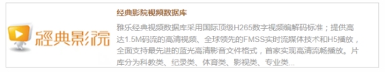 “雅乐经典视频数据库”平台是一套功能强大的多媒体视频点播系统。数据库拥有电影、电视剧、动漫、综艺、体育、经典回顾等栏目,满足不同用户的观影需求。点播系统支持PC端和移动端播放,用户在观看时无需下载客户端,支持H5播放。全面实现蓝光高清影音流畅播放。