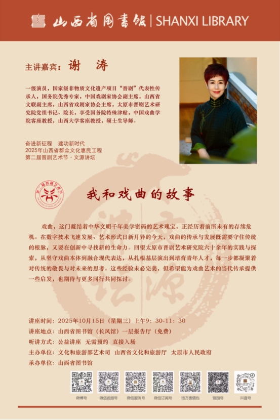 文源讲坛(10.15 周三) | 戏曲艺术家谢涛独家分享:一级演员身份背后,我与戏曲的N个精彩瞬间