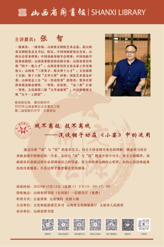 文源讲坛(10.15周三)| 国家一级演员、一级导演张智权威解读:翎子功——戏与技的完美纽带