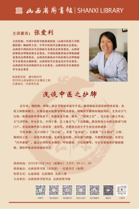 文源讲坛(10.19)| 肺病防治暗藏哪些玄机?肺病科主任张爱利从以《黄帝内经》为钥解锁护肺密码