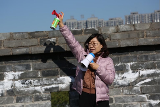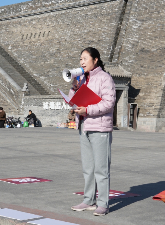 27日上午,“晋图健康行 金秋欢乐跑”活动在忻州古城开展,山西省图书馆党委书记、馆长郭欣萍在活动前做动员讲话。
