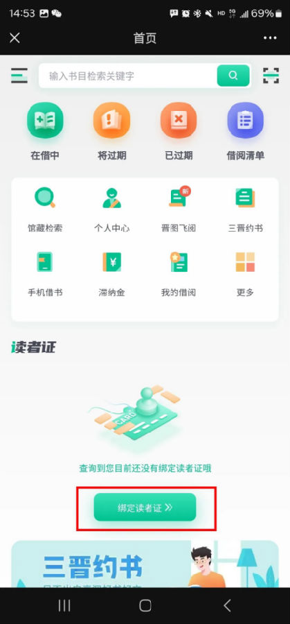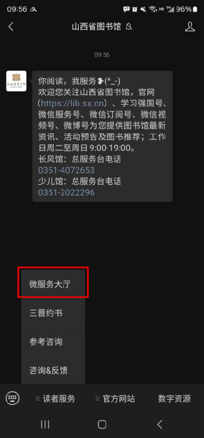 微信搜索关注“山西省图书馆”微信公众号,点击页面左下角“微服务大厅”→进入微服务大厅首页→绑定读者证,体验丰富多样的服务功能~~