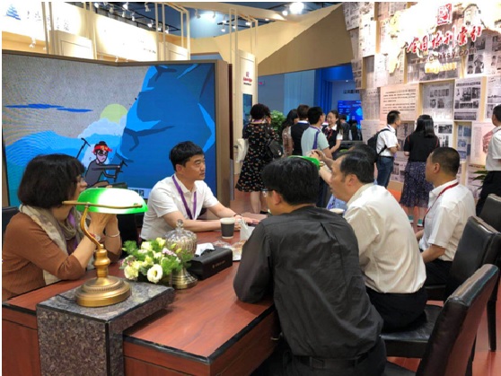 作为年会重要内容之一的图书馆展览会,顺应“会展一体化”的国际化办展理念,充分整合各方信息与资源,展示内容和手段更加多样,全面提升观展感受,全方位展现近年来全国图书馆行业的发展成就和未来前景。王建军馆长、石焕发书记一行9人步入展厅,依次参观了包括国家重点文化工程展区,“丝绸之路国际文化交流中心”展区、“全国图书馆文化创意产品开发联盟”展区、“中华古籍保护计划·第二届古籍保护技术与装备展示”等展区。在上海图书馆《全国报刊索引》展区,馆领导与上海市图书馆副馆长何毅就图书馆发展共性问题进 行了广泛深入地沟通。
