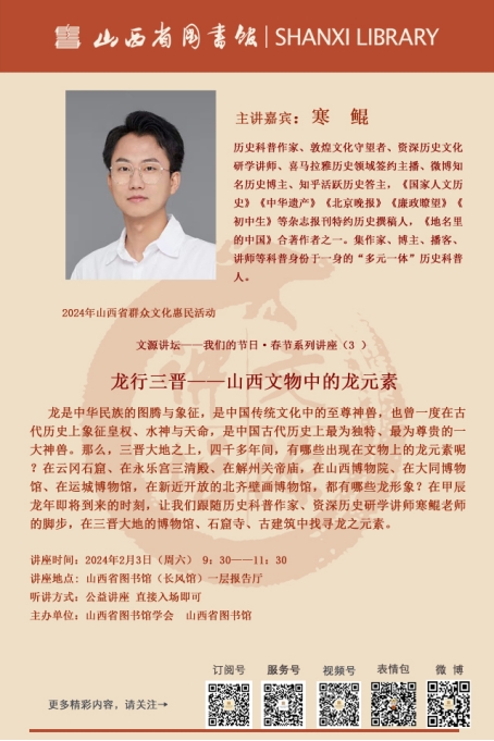 【文末福利】文源讲坛 · 预告(2.3) | 揭开三晋龙元素文物的神秘面纱