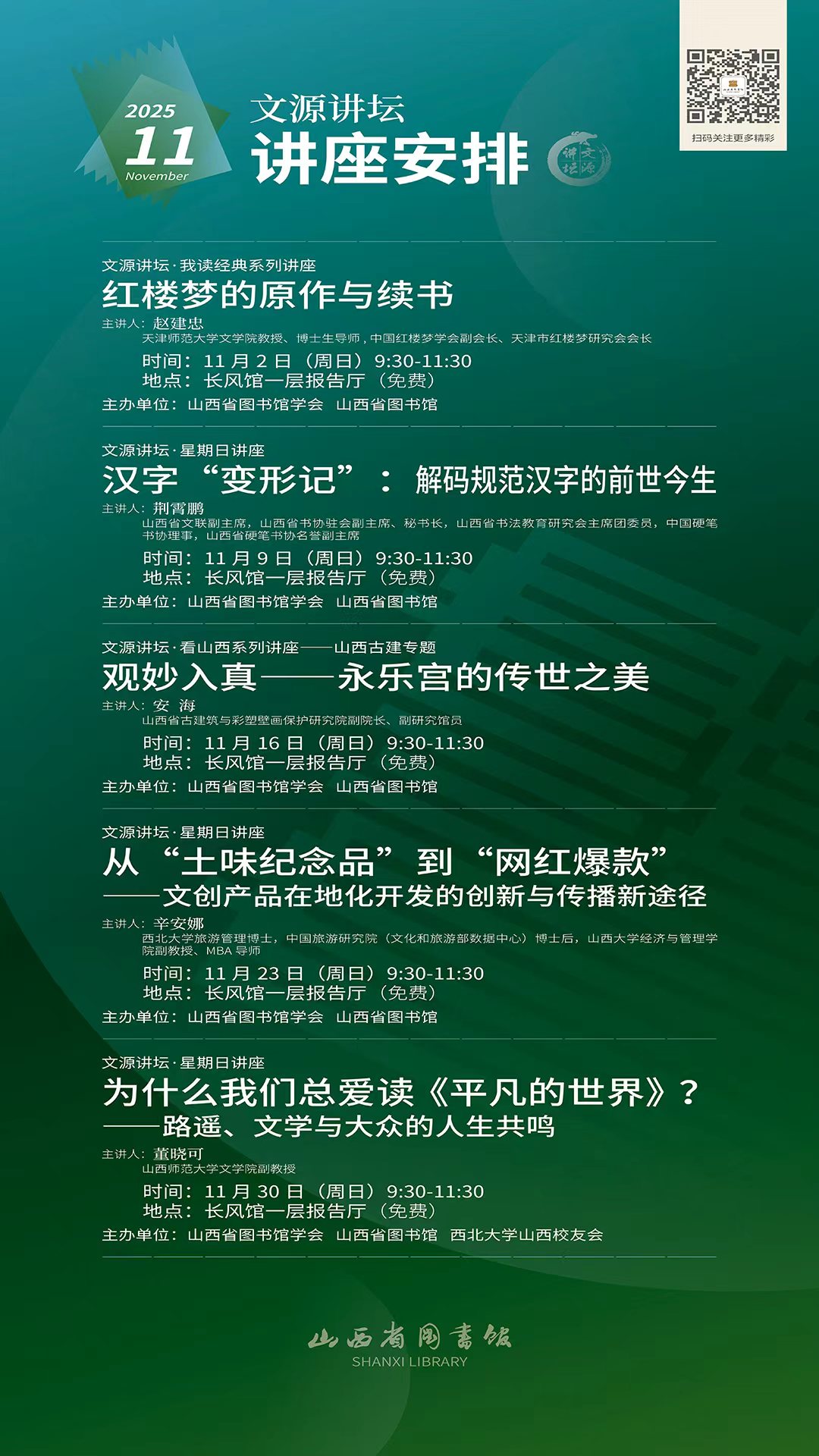 讲座地点:山西省图书馆(长风馆)报告厅